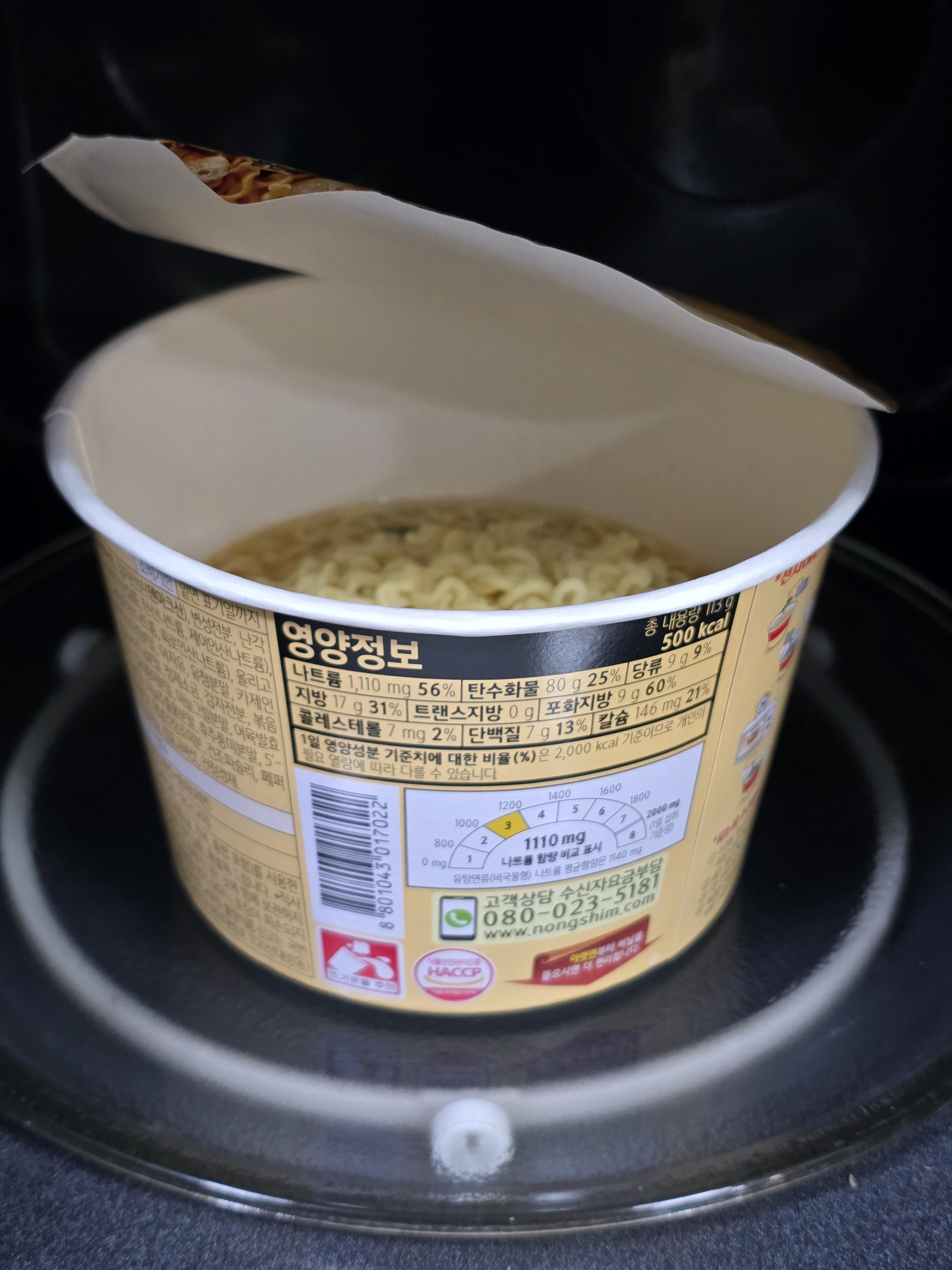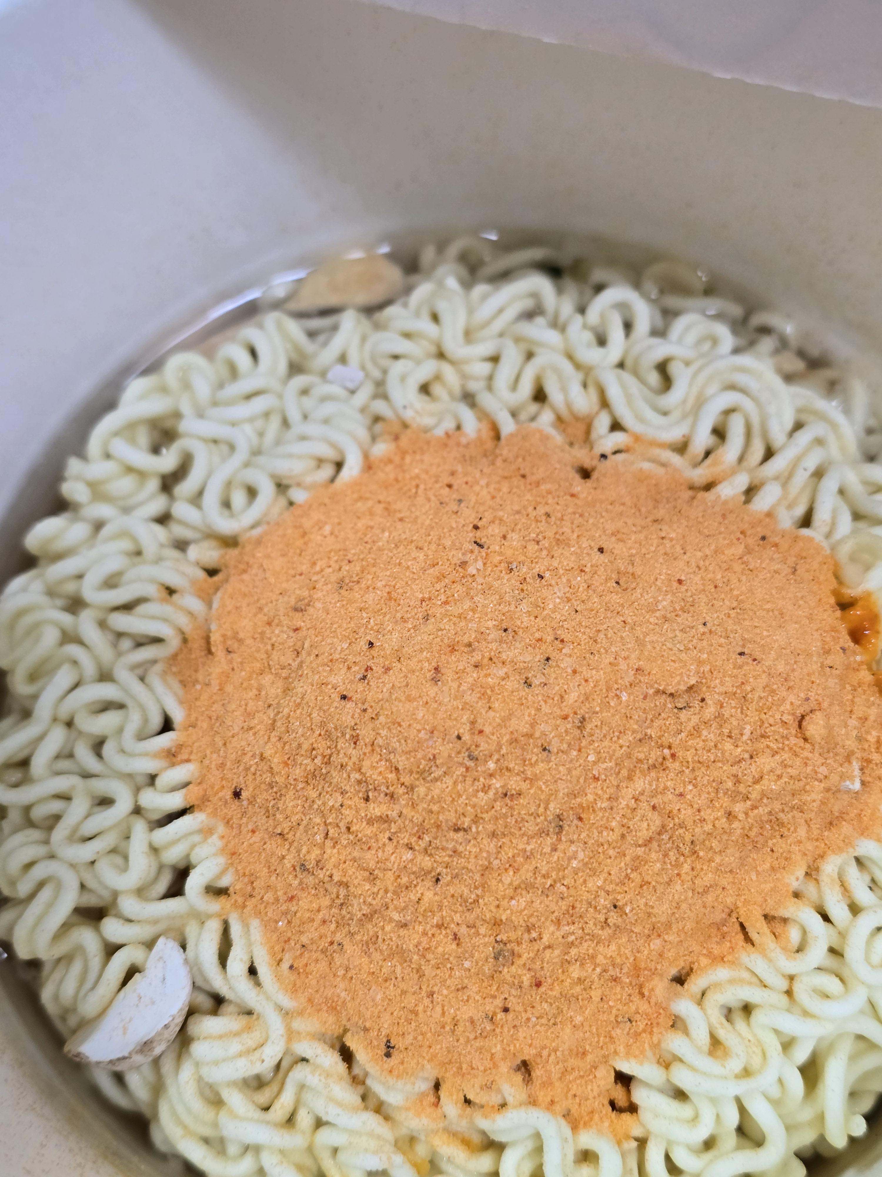 반응형2. 매콤한 전첨분말을 넣고, 끓는 물을 용기 안쪽 표시선까지 붓습니다.