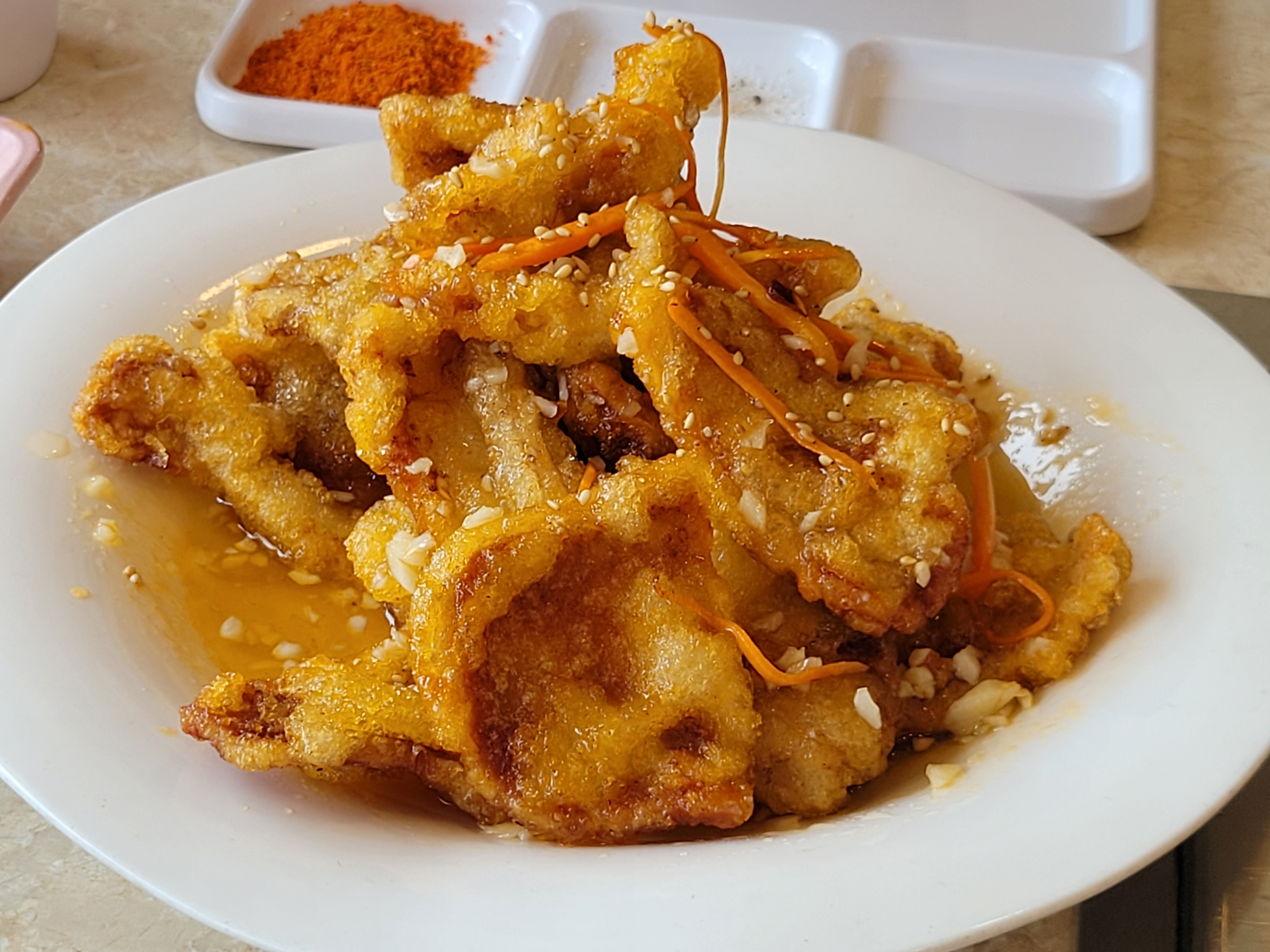꿔바로우 양도 많고 소스가 새콤달콤한데 바로 튀겨서 만들어주니 겉은 바삭 속은 촉촉해 손이 자꾸 가는 메뉴입니다.