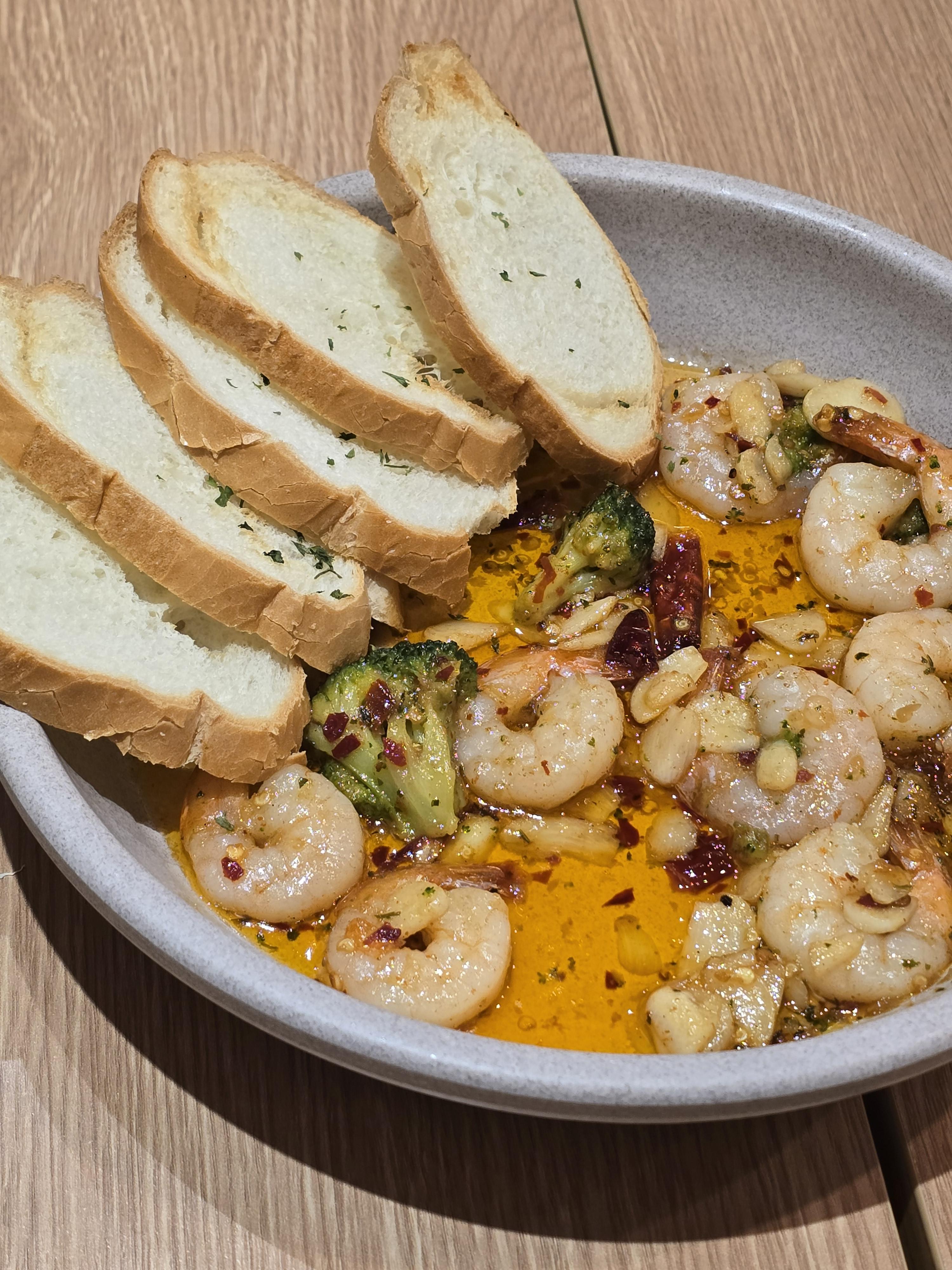 감바스 : 탱글한 새우와 향긋한 마늘을 바게트와 함께 먹는 별미였어요.