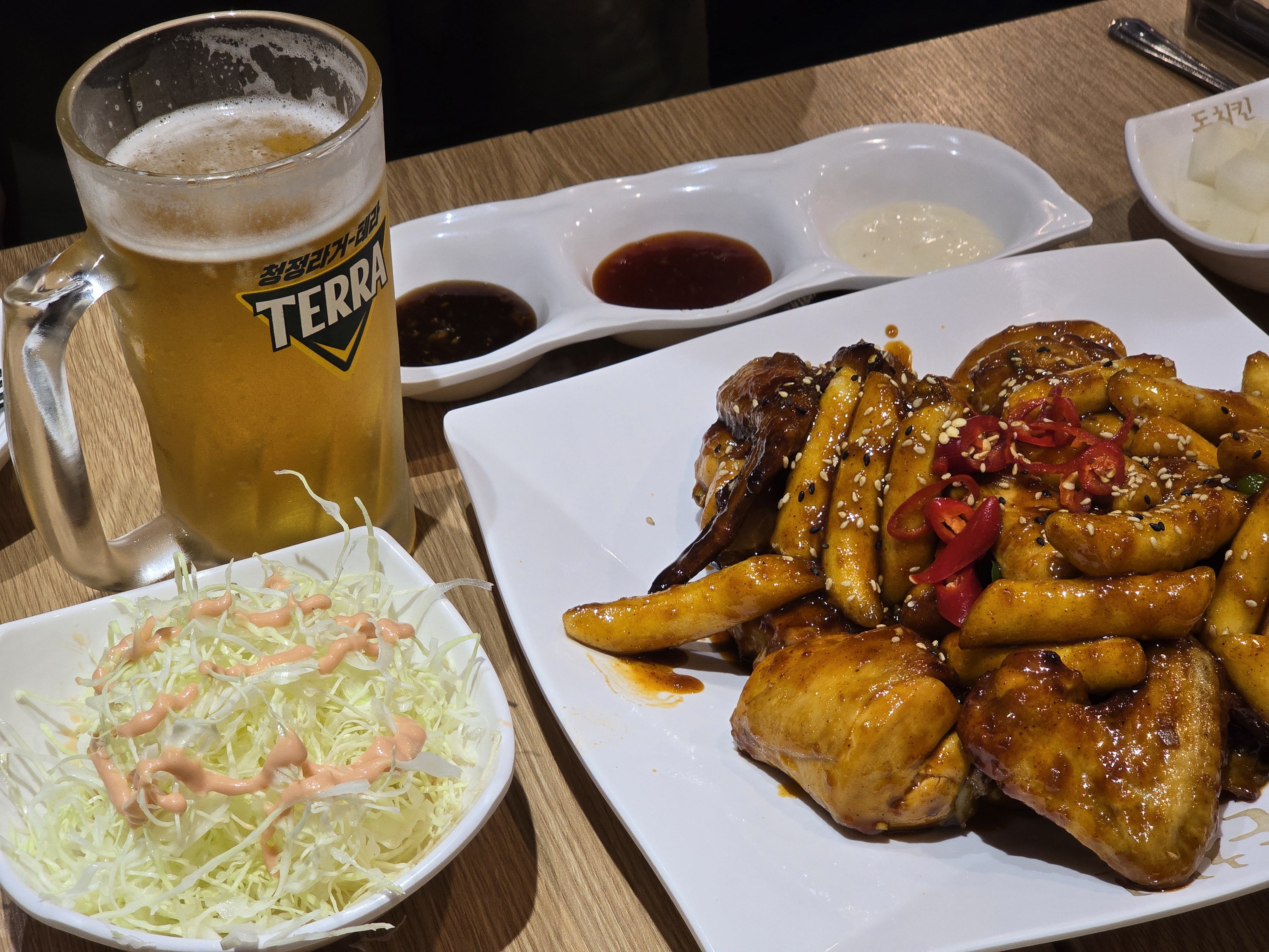 저희는 4명이어서 맥주도 한잔 하며 안주로 청양숯불바비큐, 감바스, 골뱅이소면을 주문했습니다.
