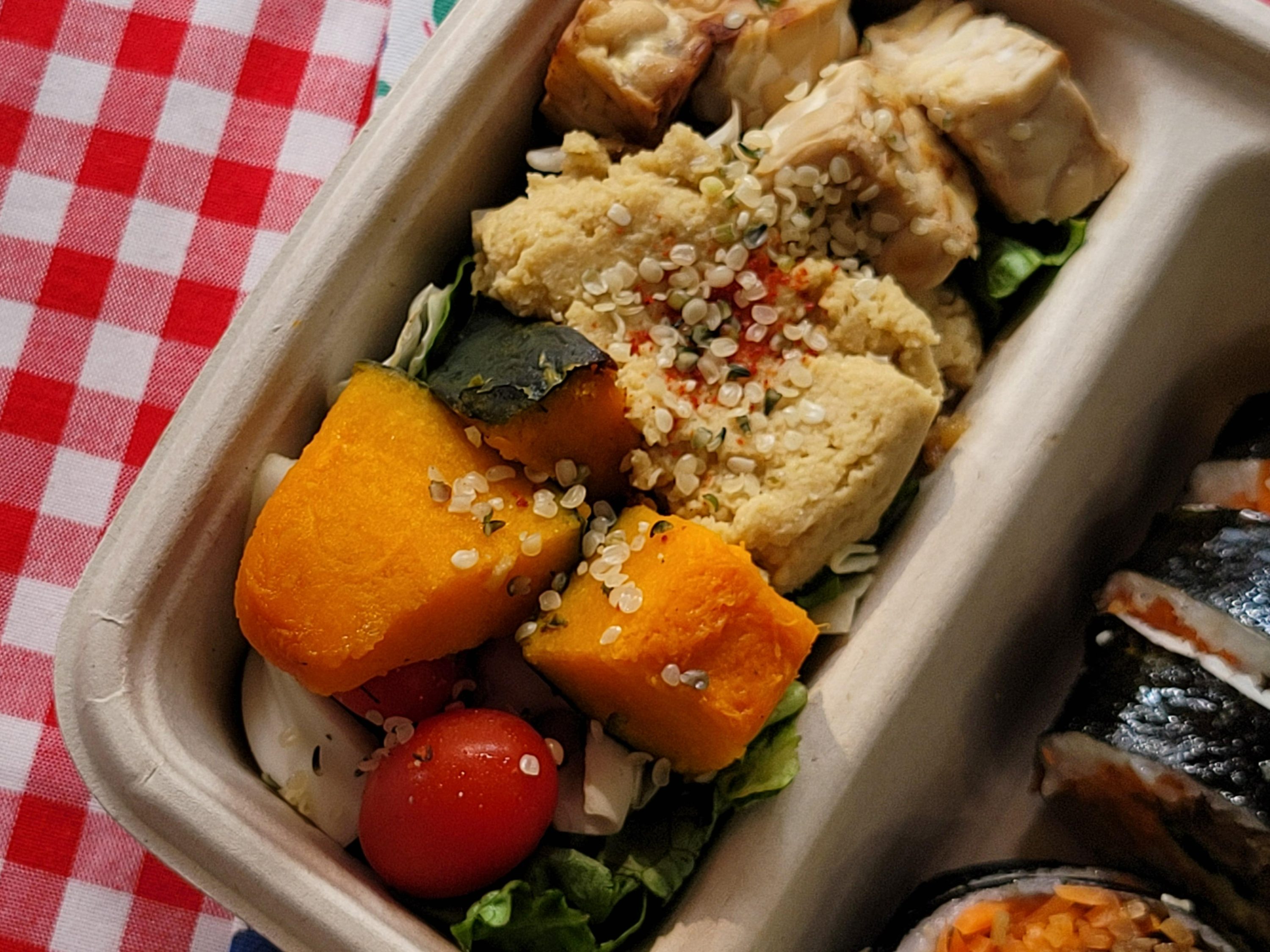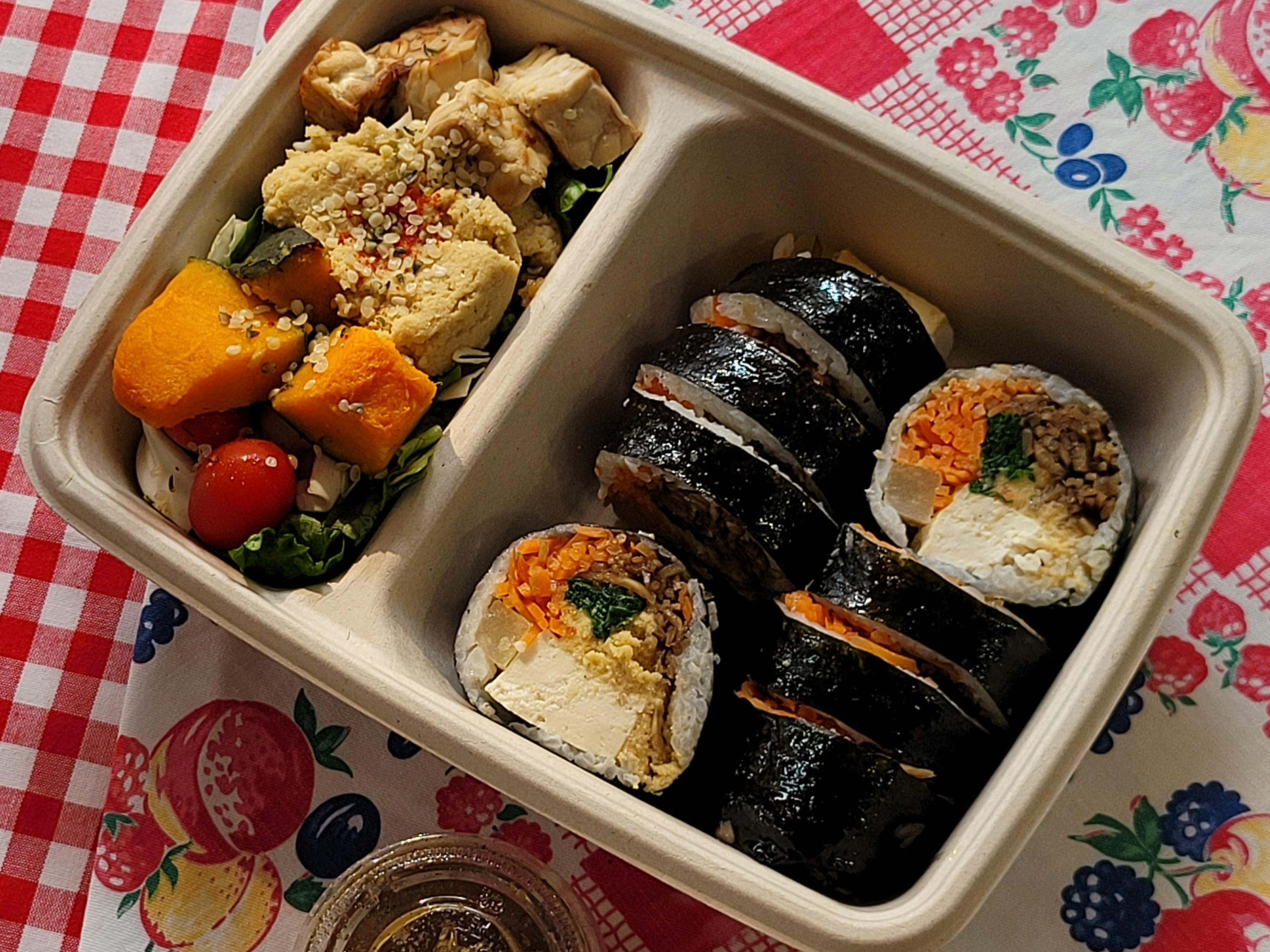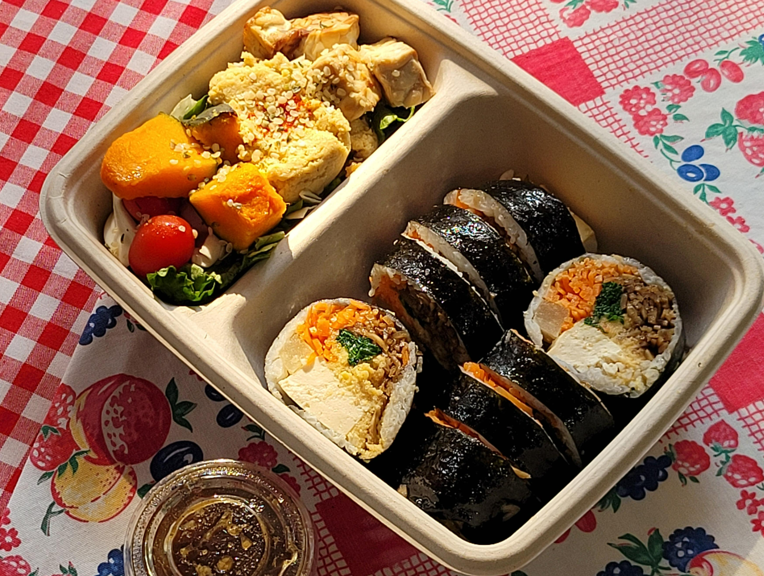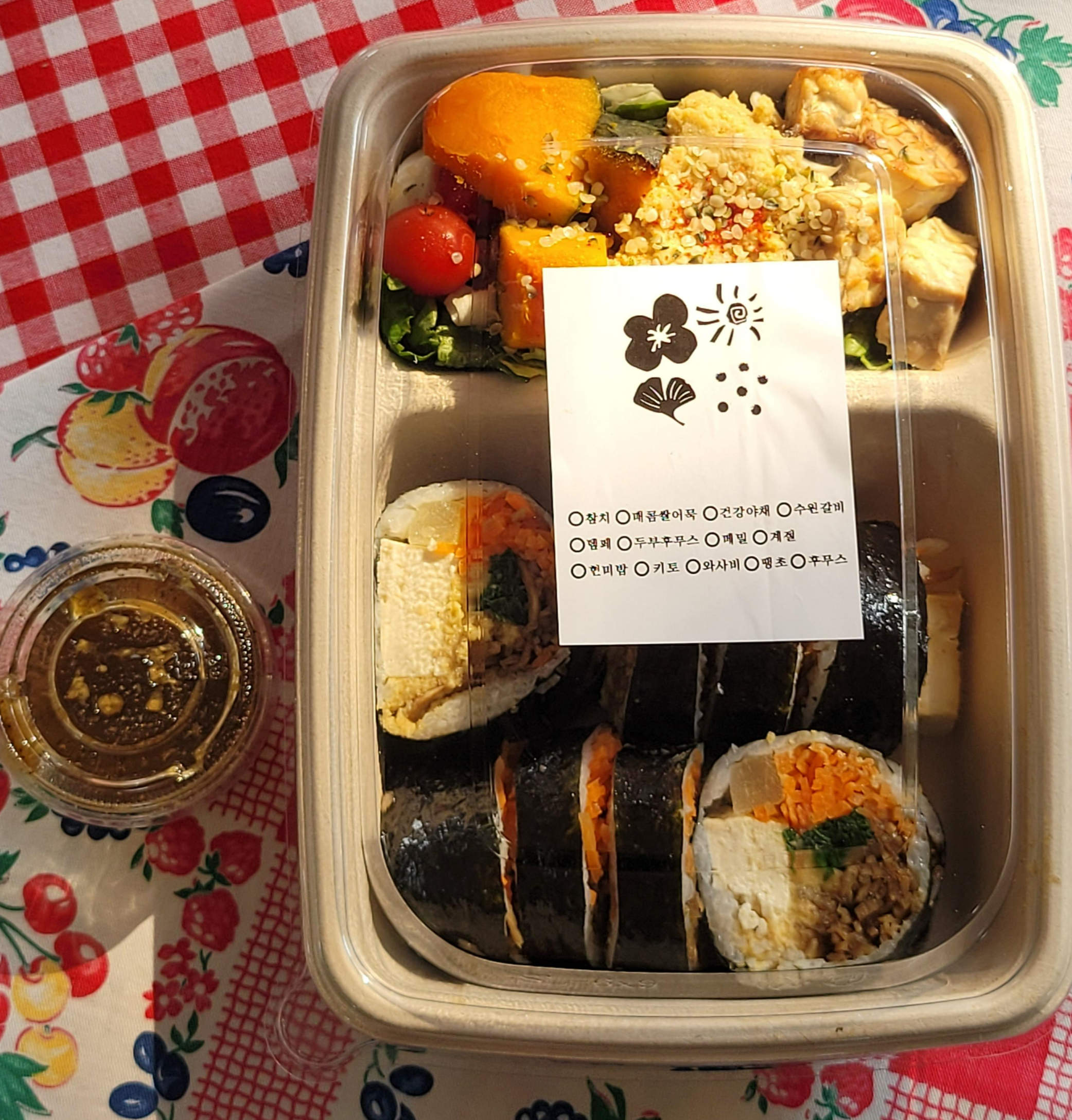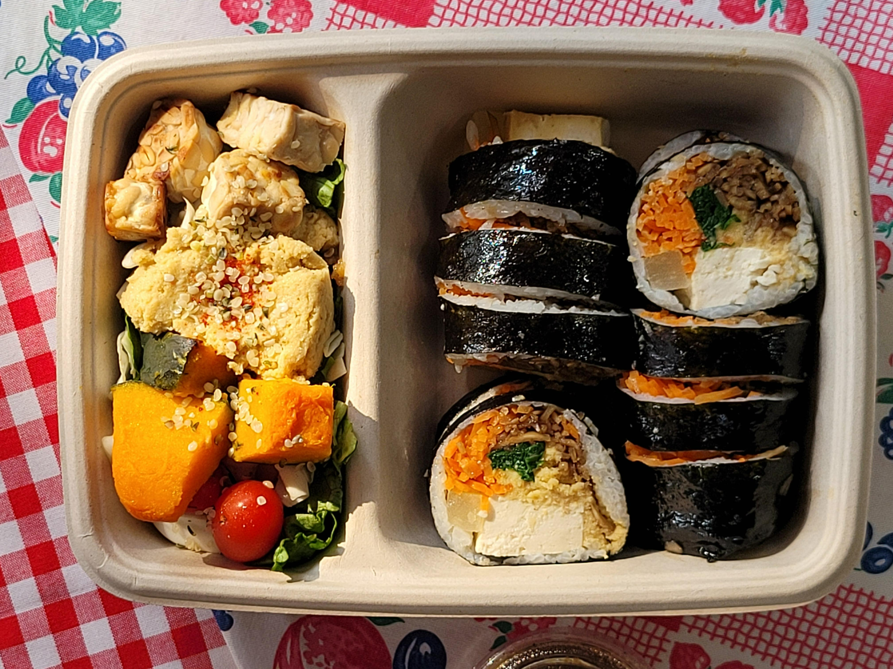 두부후무스김밥과 후무스 템페 샐러드를 포장해서 먹어봤습니다.