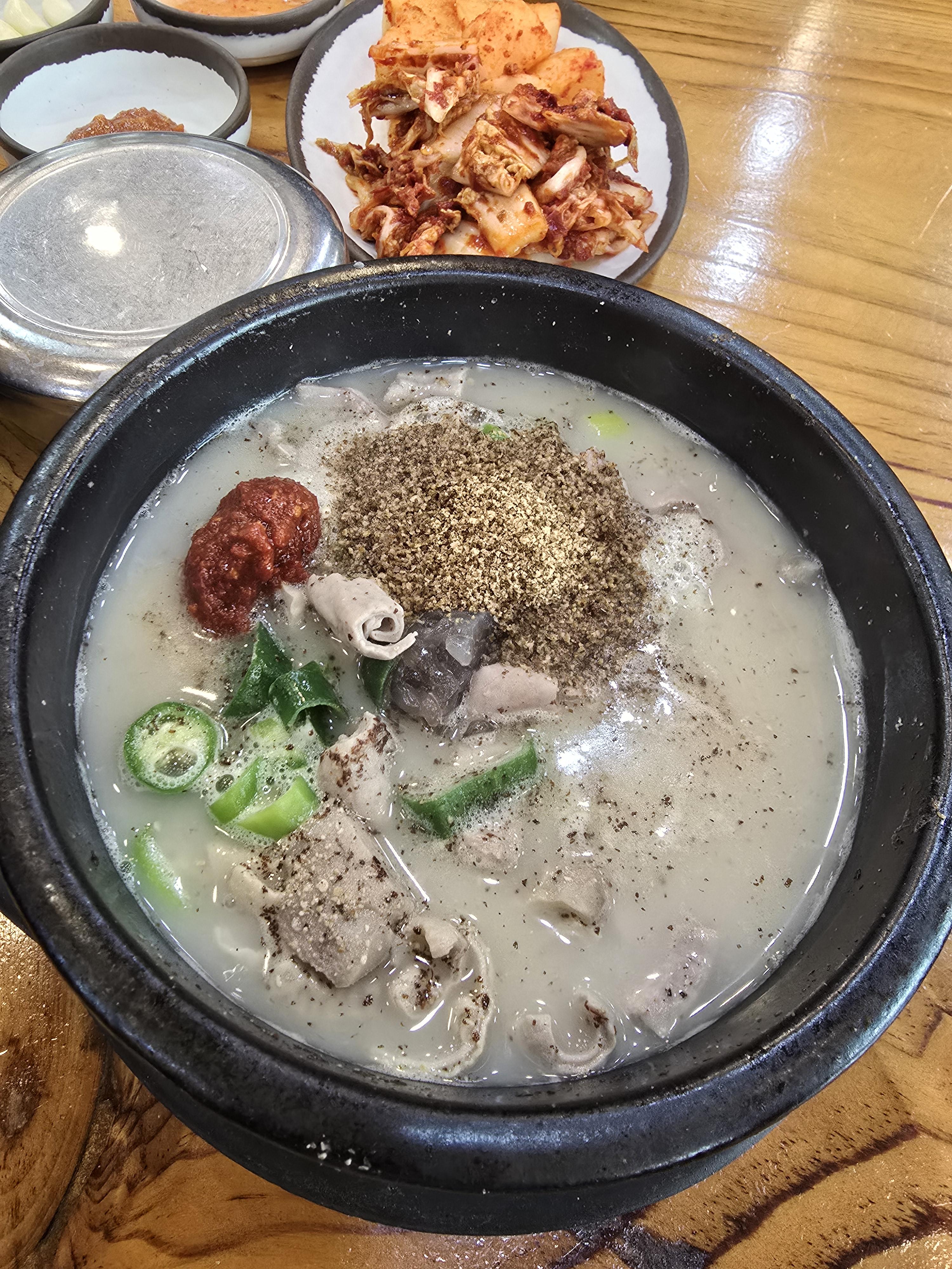 순댓국에 청양고추, 들깨가루, 다진 양념 추가해서 먹으니 국물이 매콤하고 칼칼합니다.