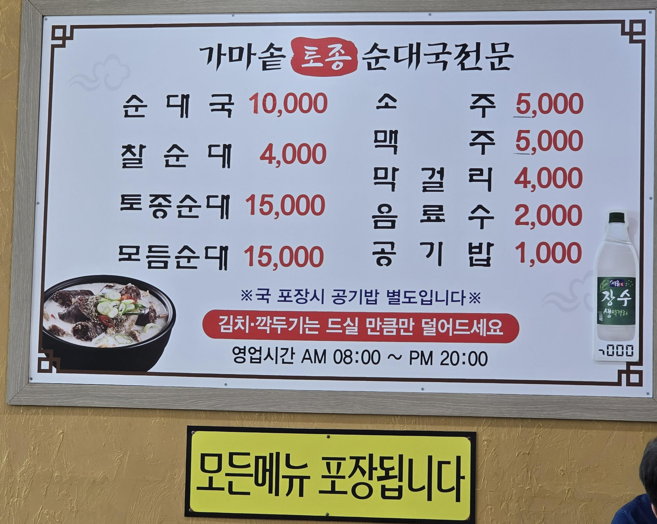 모듬순대 15,000원메뉴는 간편하게 점심식사하기 좋게 순대국, 순대, 음료, 주류로 구성되어 있습니다.