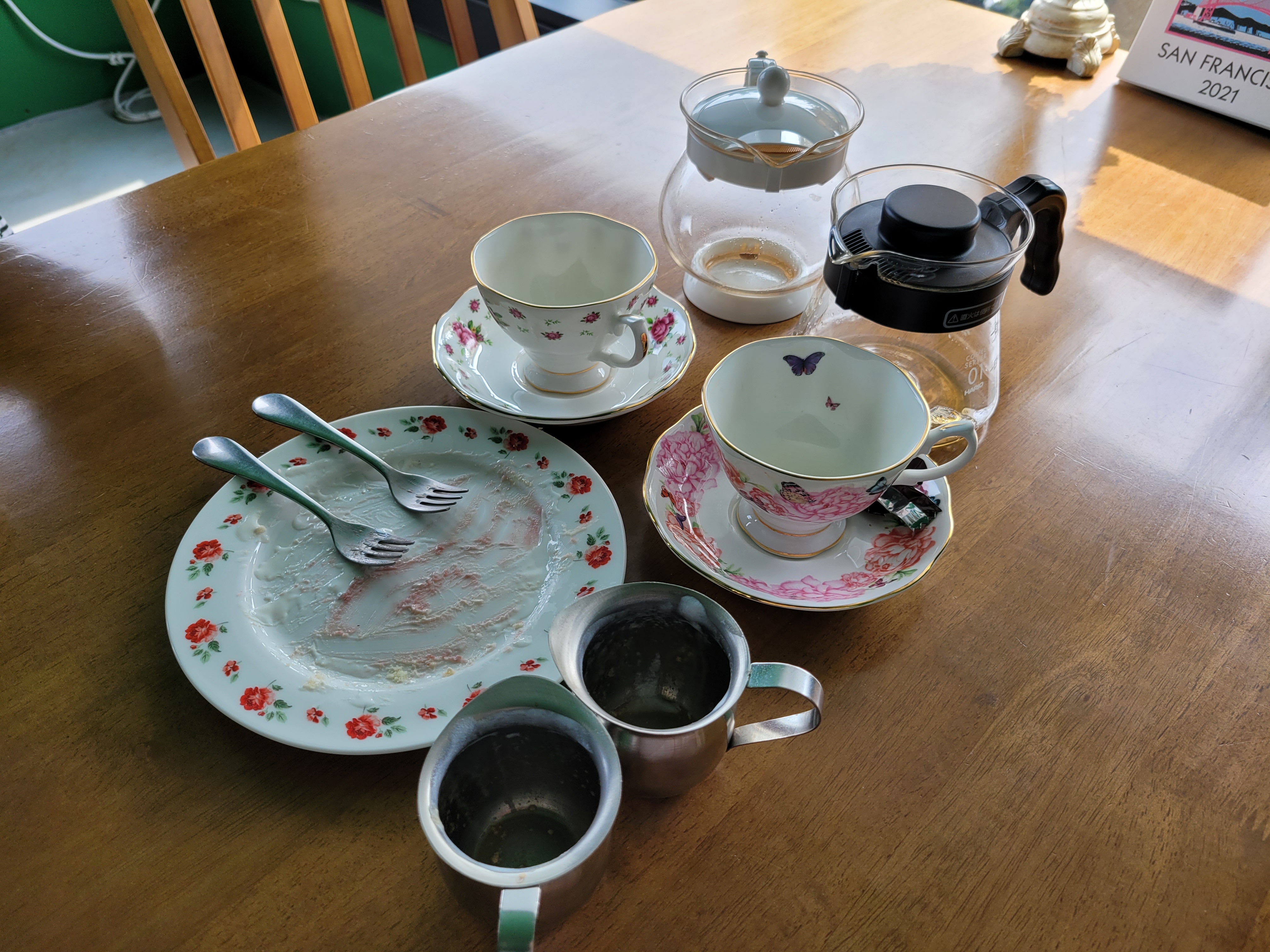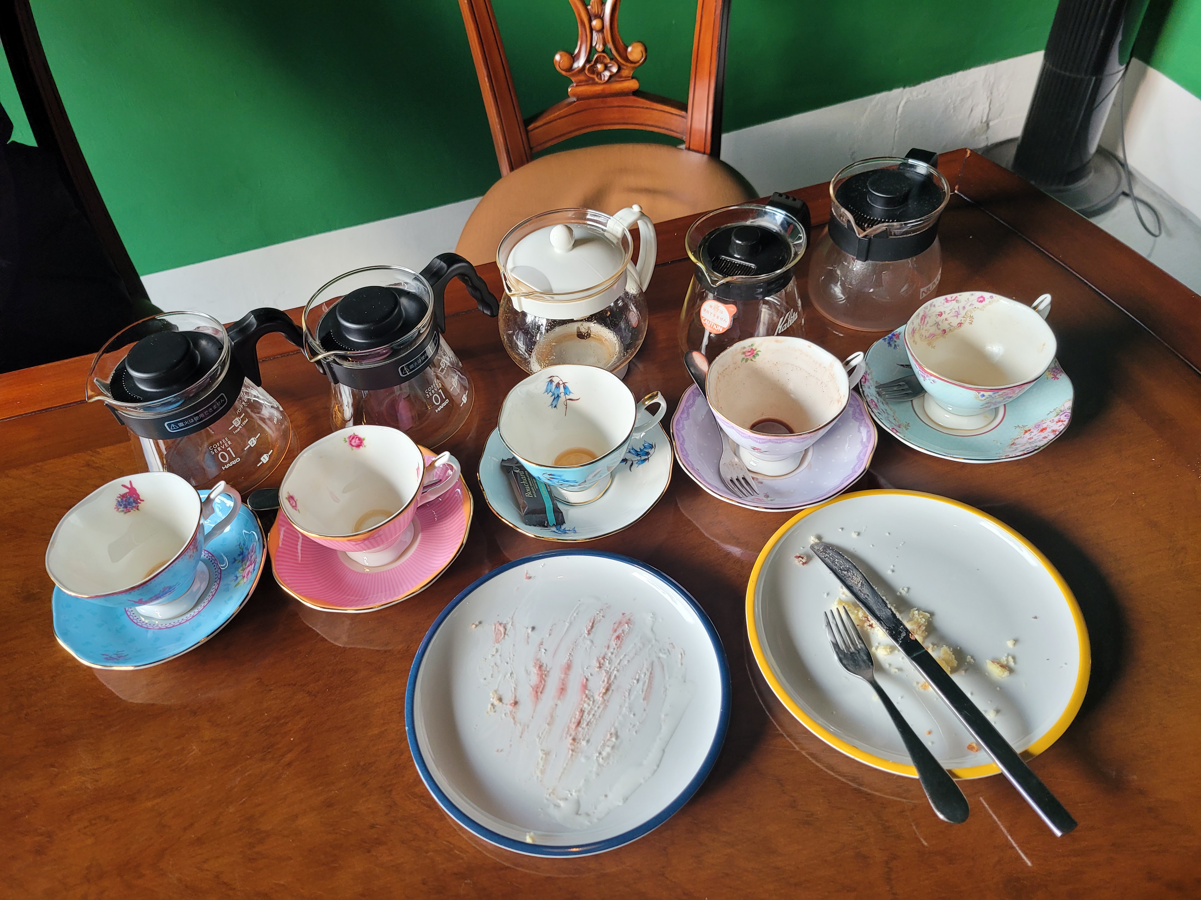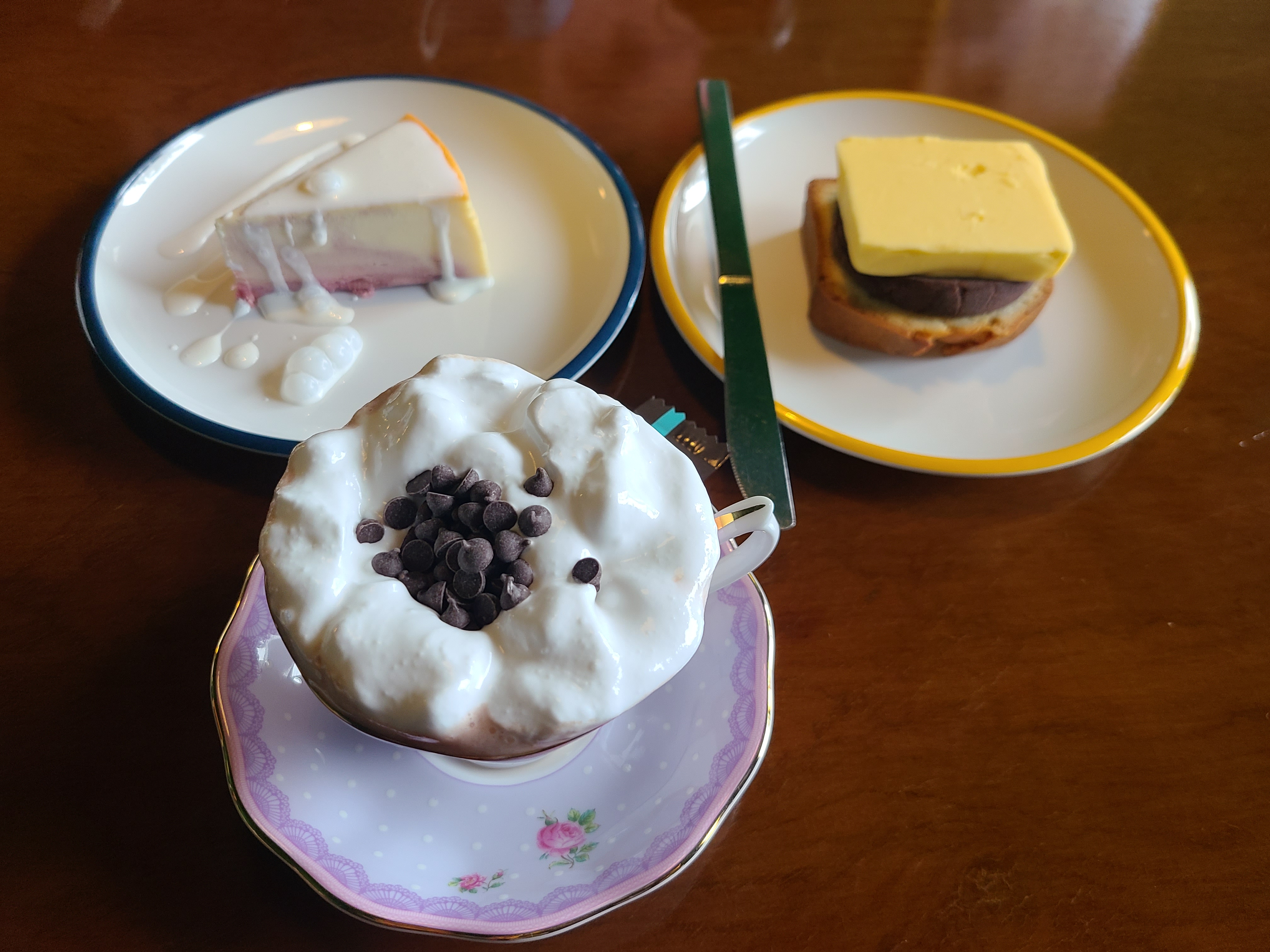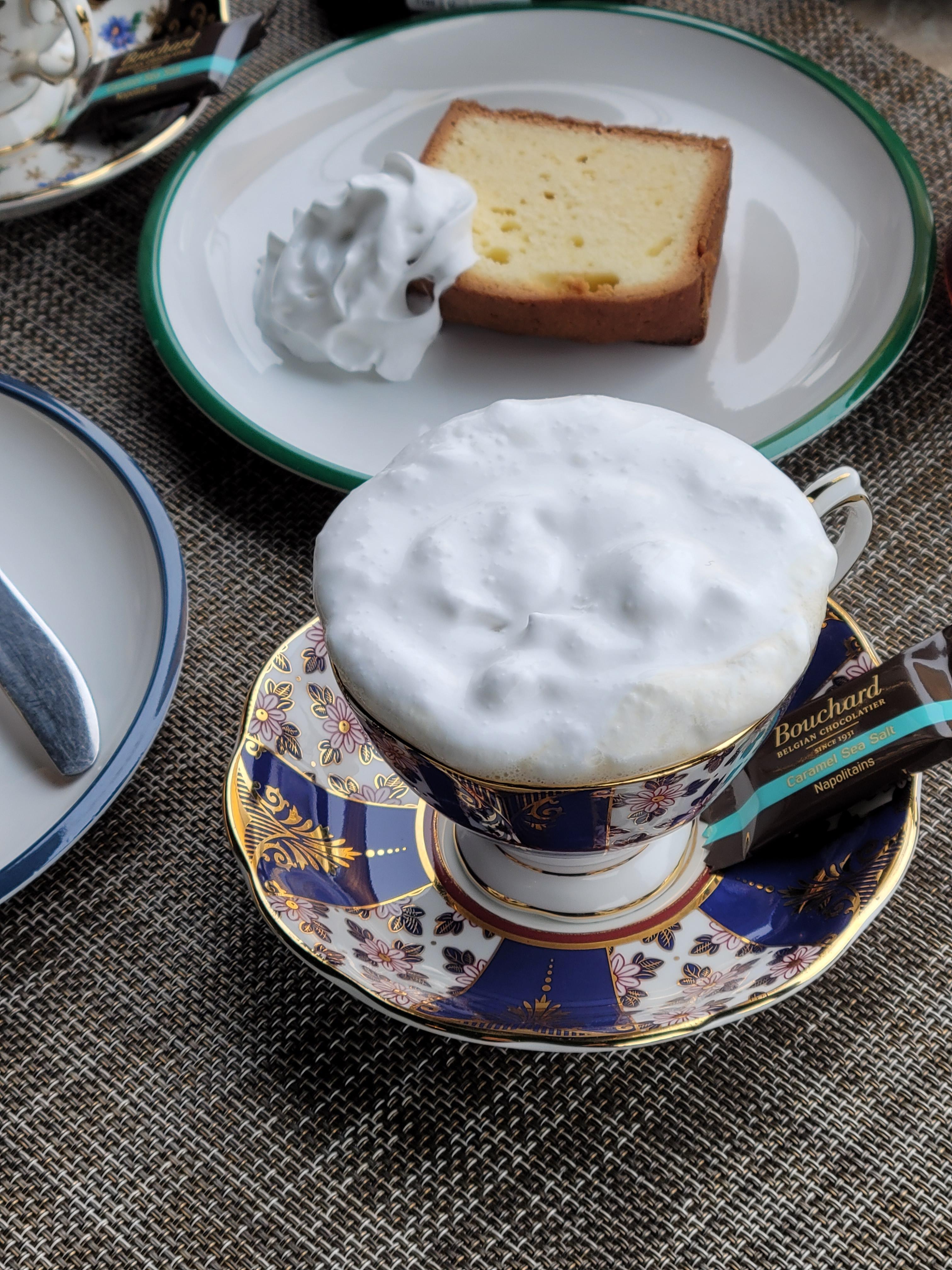 로열알버트 커피잔에 작은 초콜릿과 커피를 예쁘게 담아주고 추가로 티팟에 리필커피를 더 줍니다.