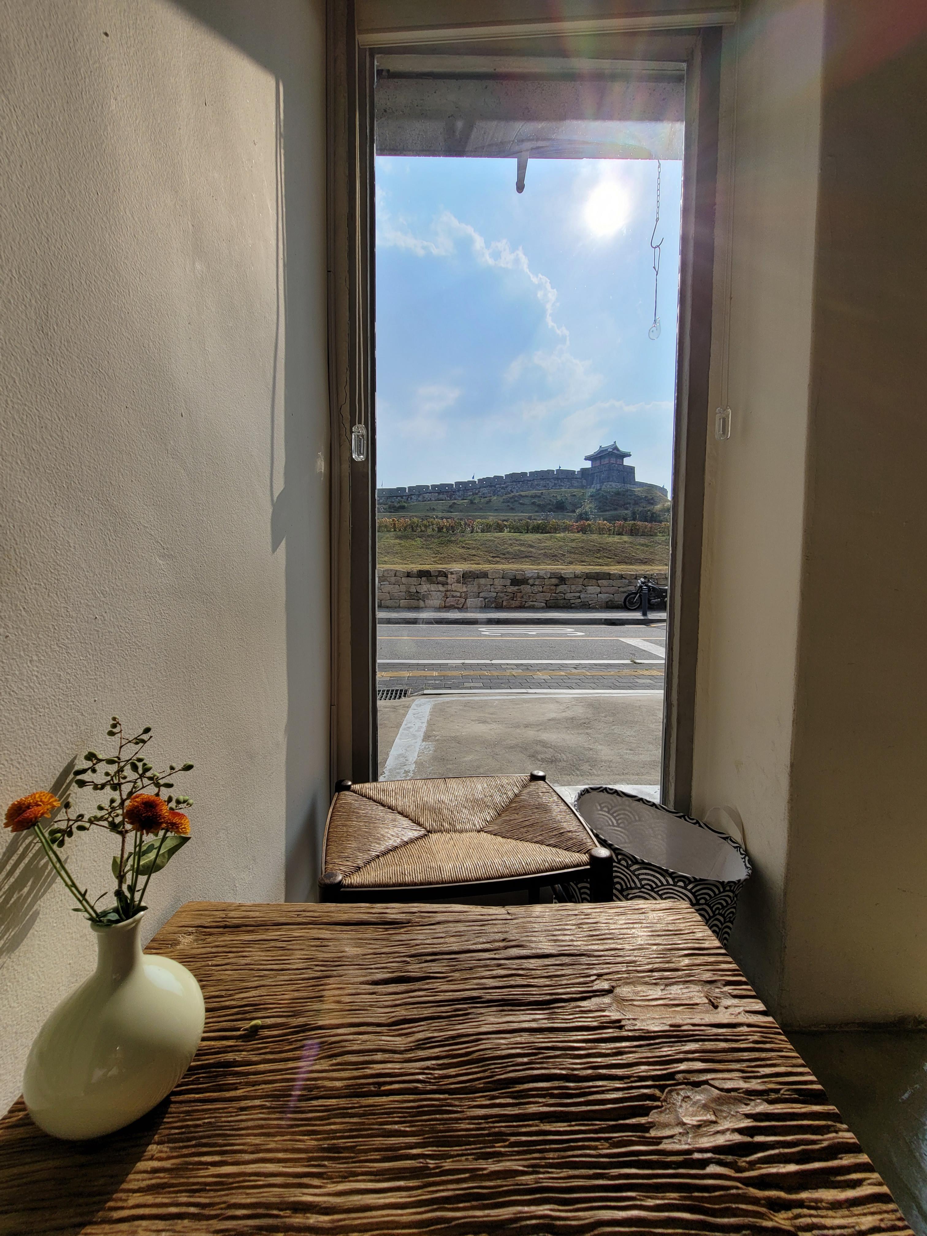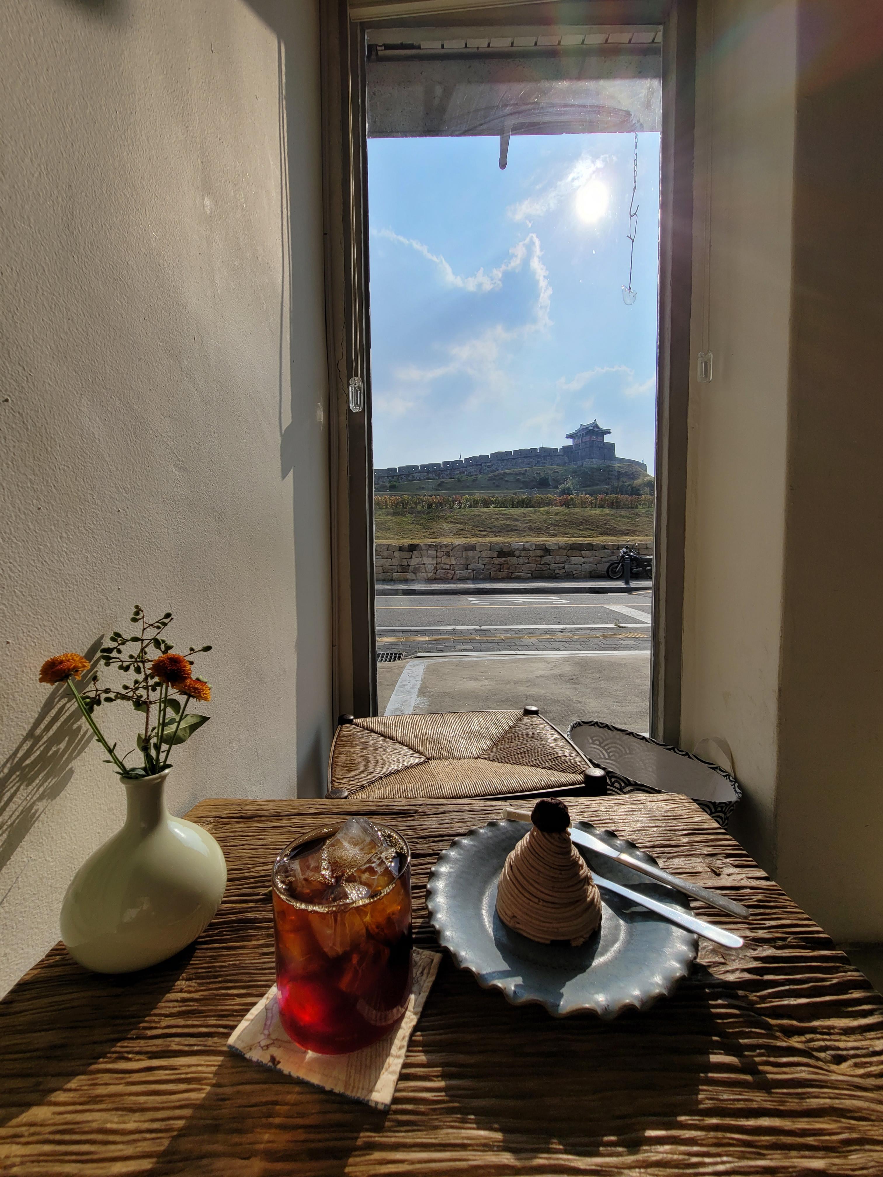 따뜻한 햇살과 고즈넉한 성곽뷰와 아이스블랜디드 커피와 밤몽블랑