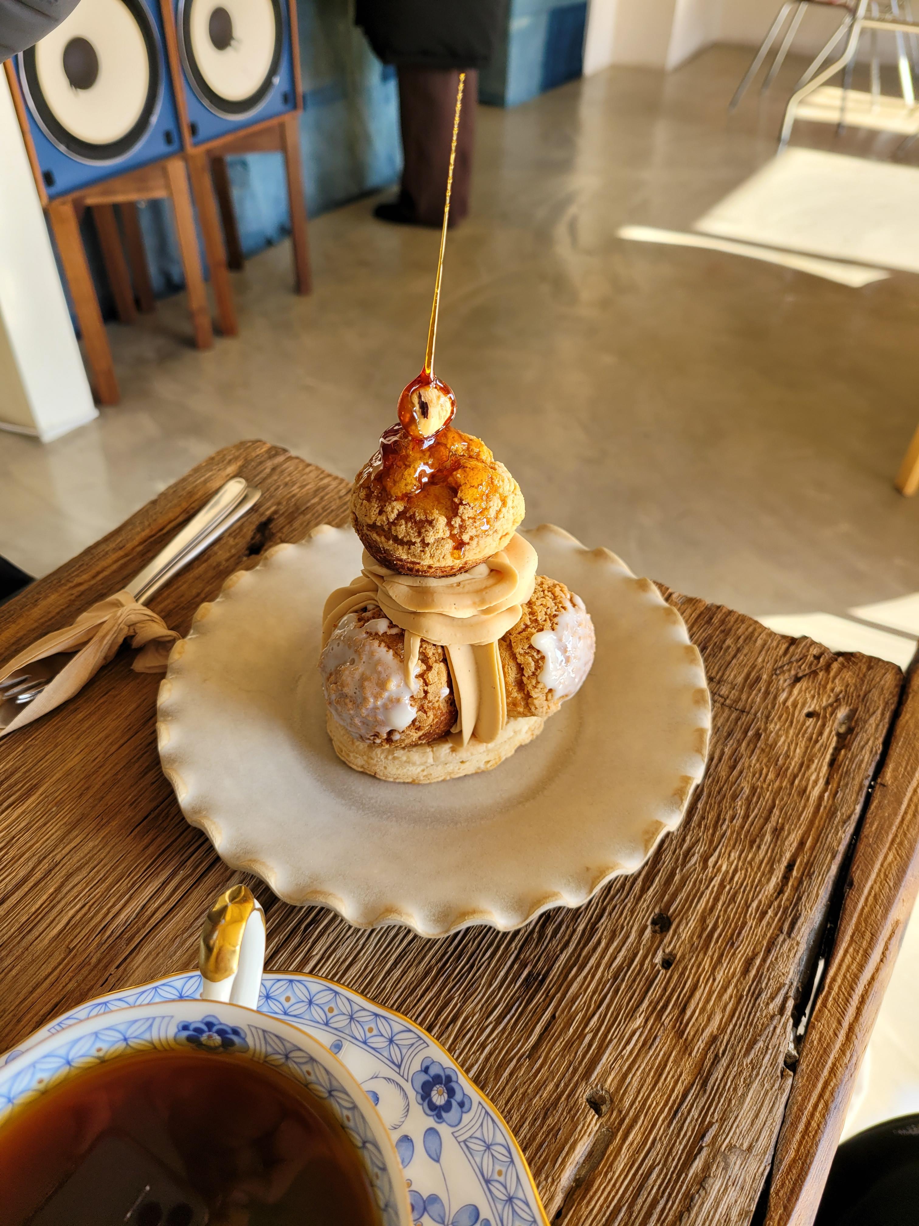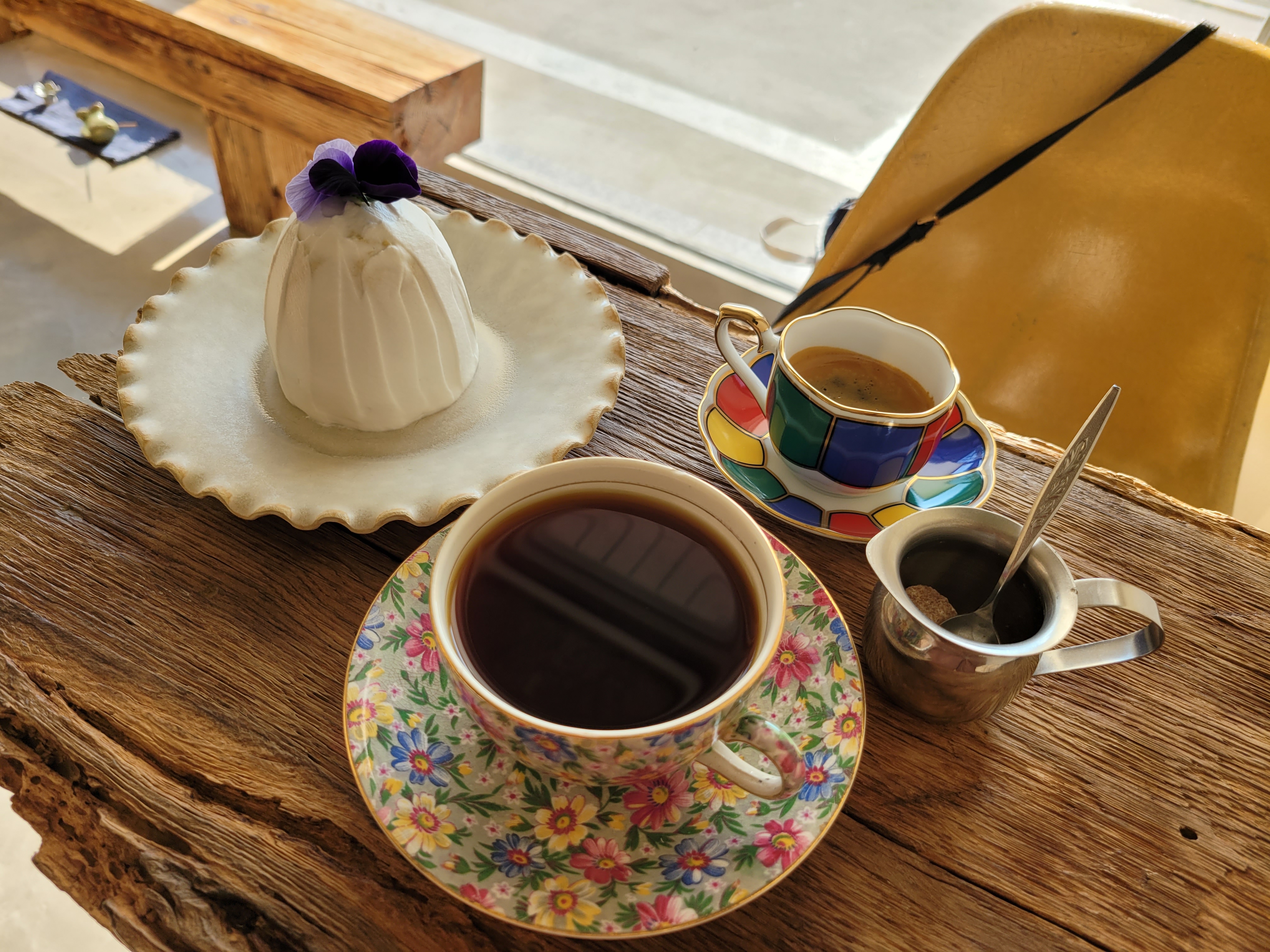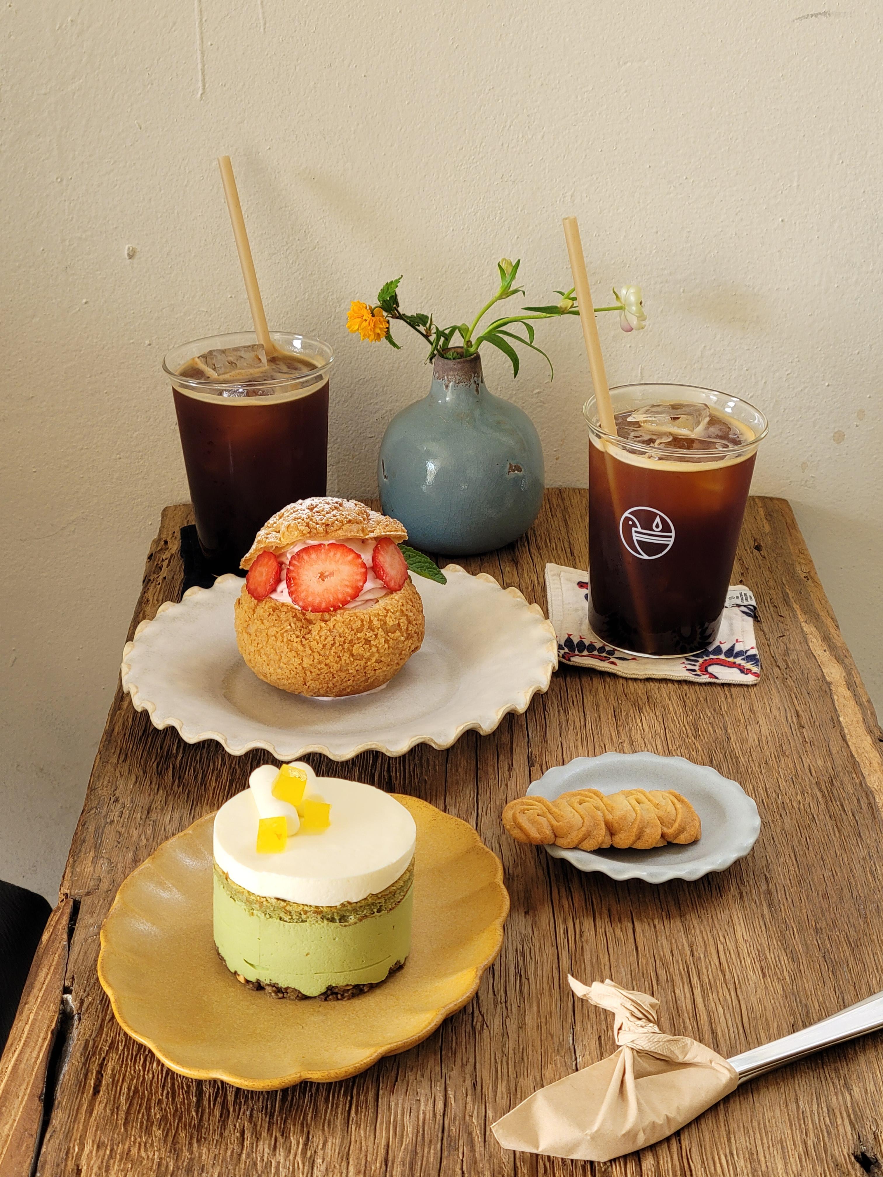 카페는 빈티지하고 아늑한 분위기이며 테이블이 4개뿐인 소규모로 운영하는 프라이빗한 공간입니다.