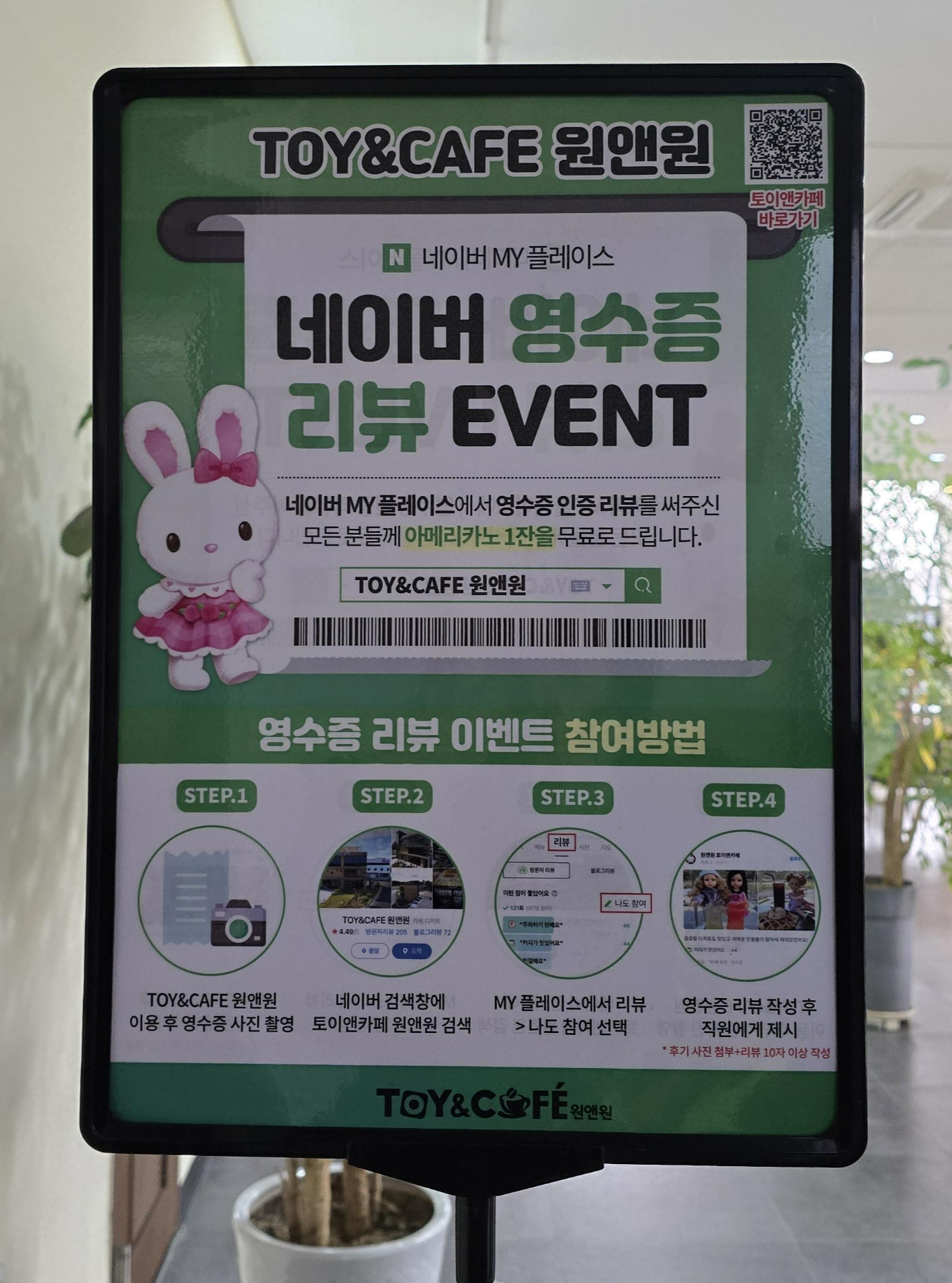 인형 구매하면 음료가 할인되고 네이버 영수증 리뷰 이벤트도 하고있어요.