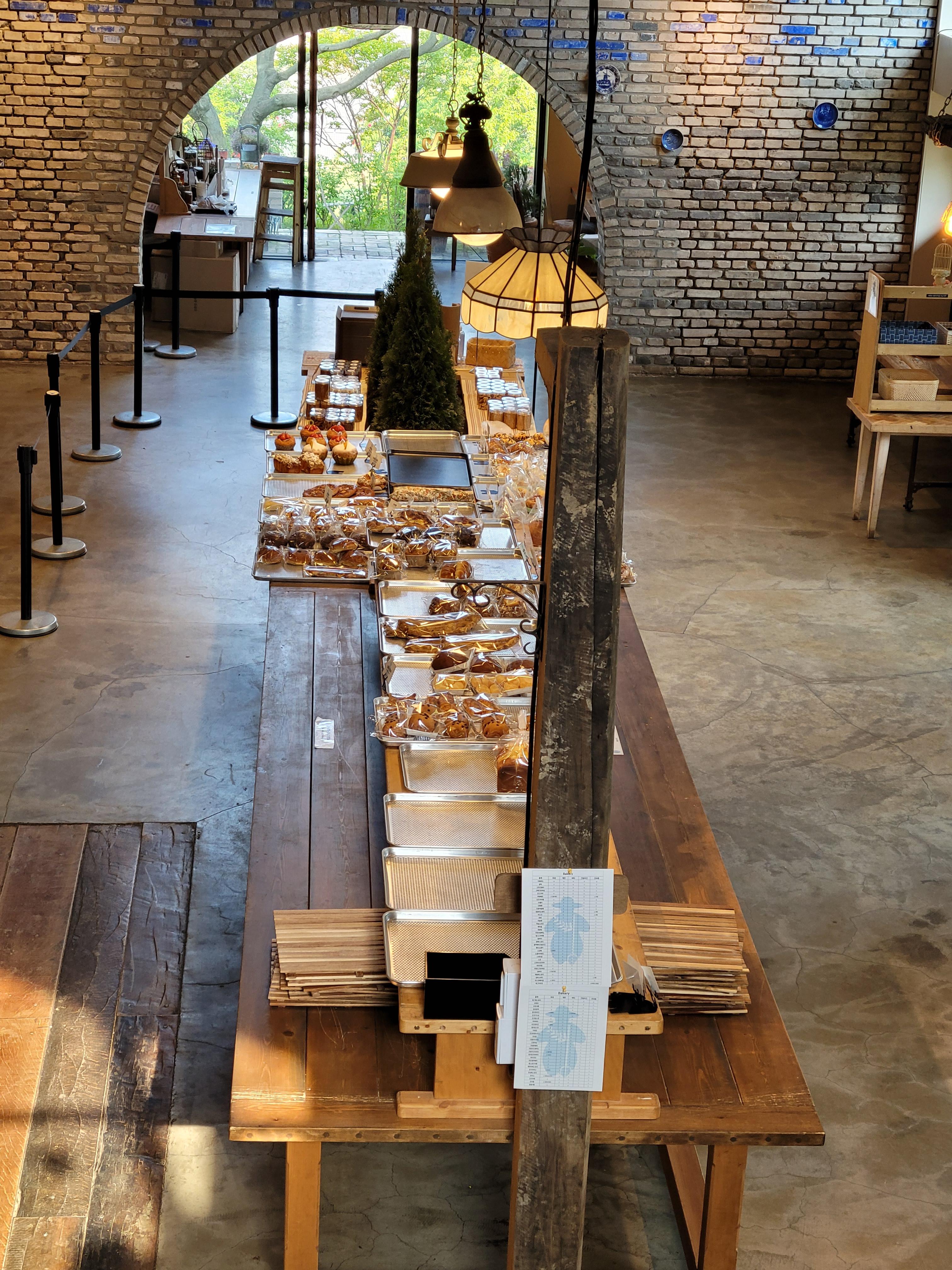 카페 내부에 들어가면 맛있어 보이는 베이커리류가 진열되어 있습니다.