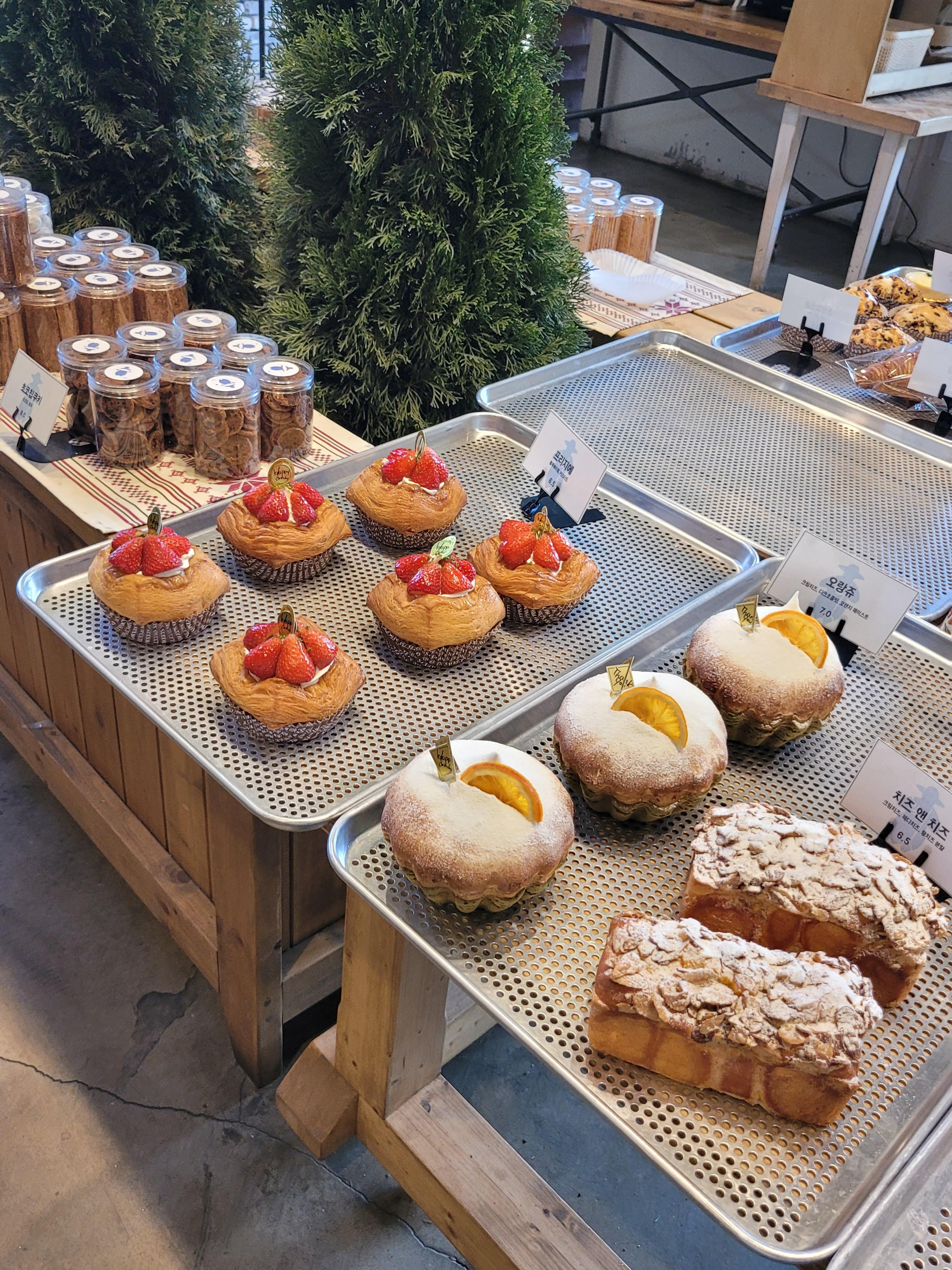 카페 내부에 들어가면 맛있어 보이는 베이커리류가 진열되어 있습니다.